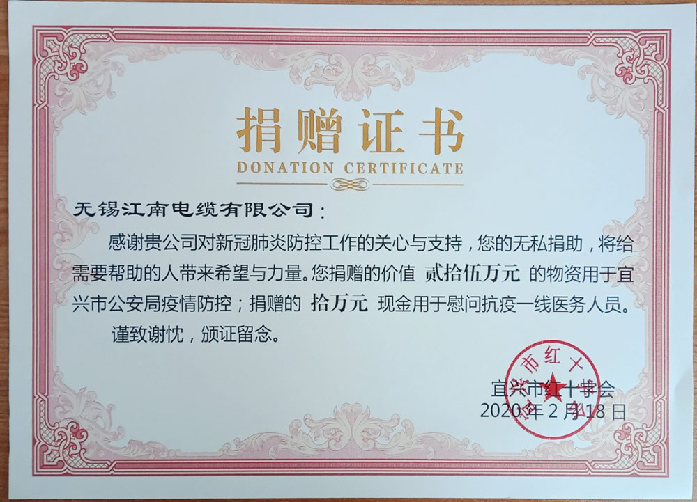 • 江南电缆志愿者团队荣获无锡市“优秀青年突击队”称号等