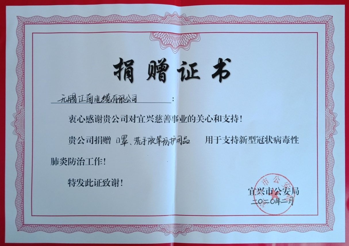 • 向宜兴市公安局、一线医务人员捐赠疫情防控物资等