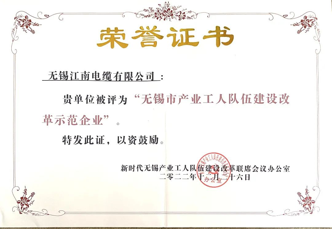 • 【奋进新征程·建功新时代】无锡市总工会领导为“无锡市产业工人队伍建设改革示范企业”——江南电缆授牌