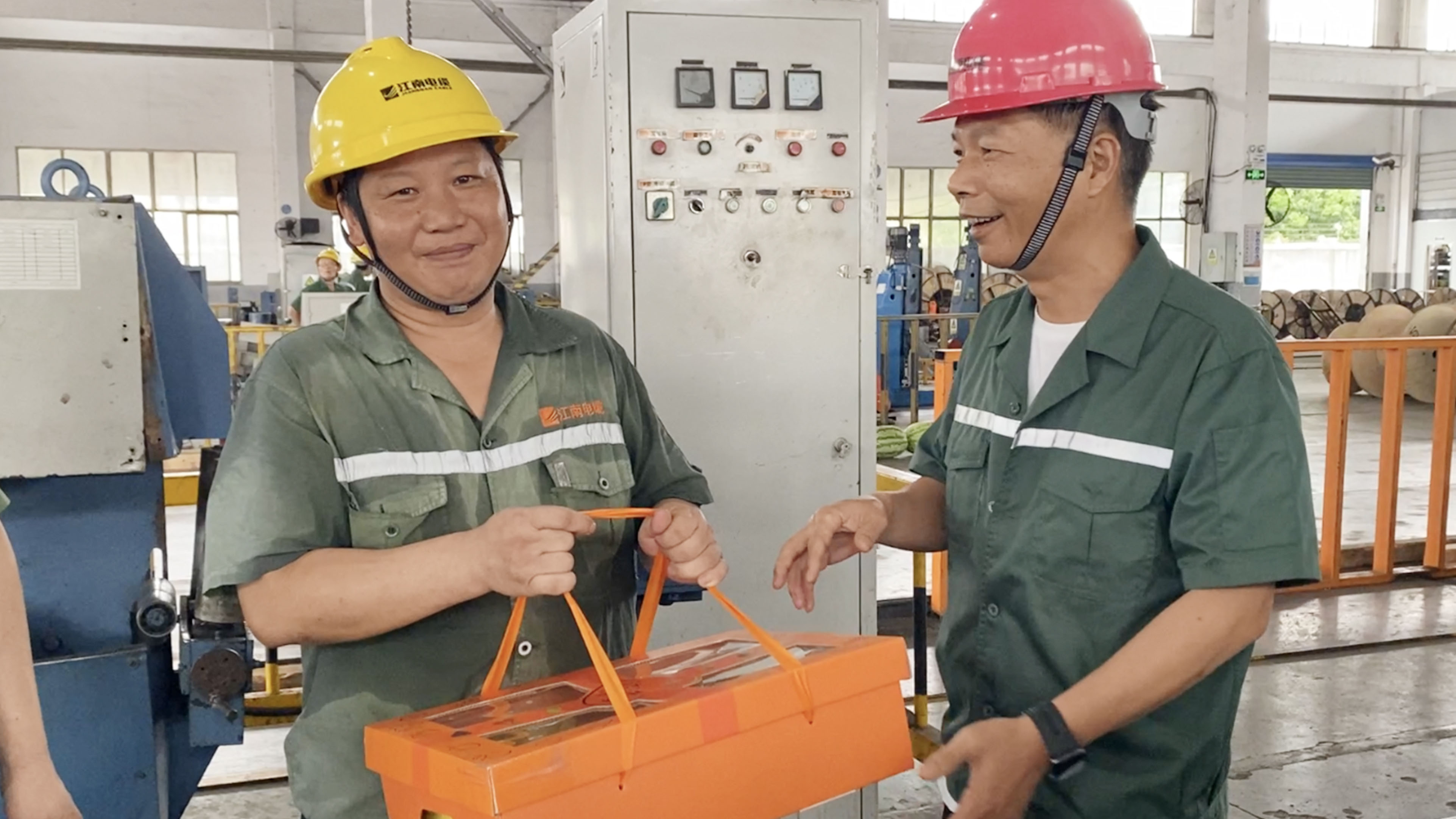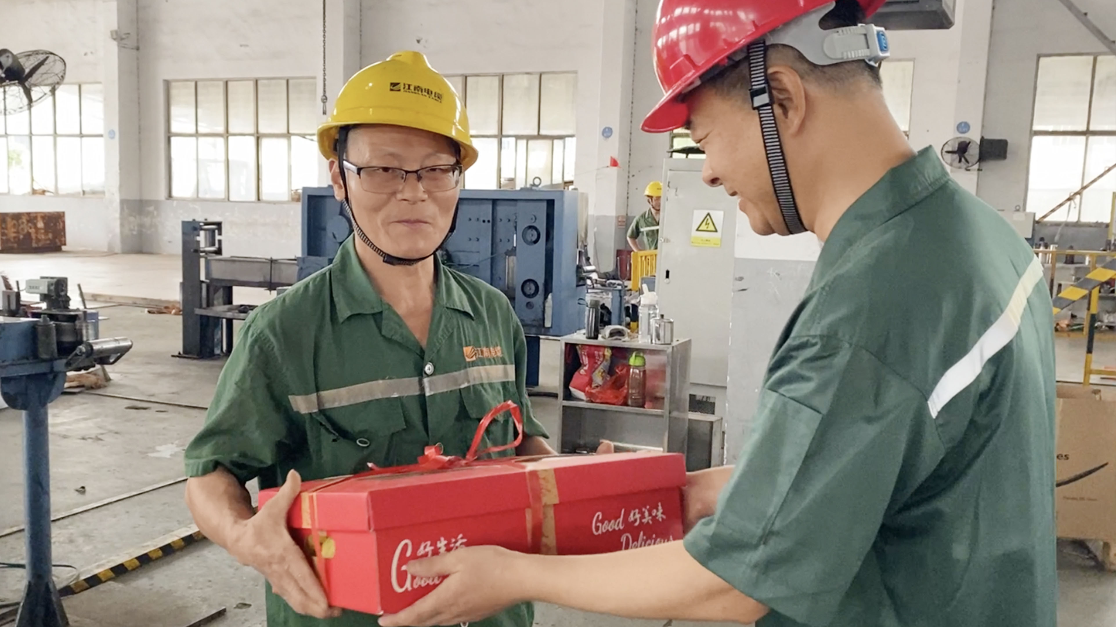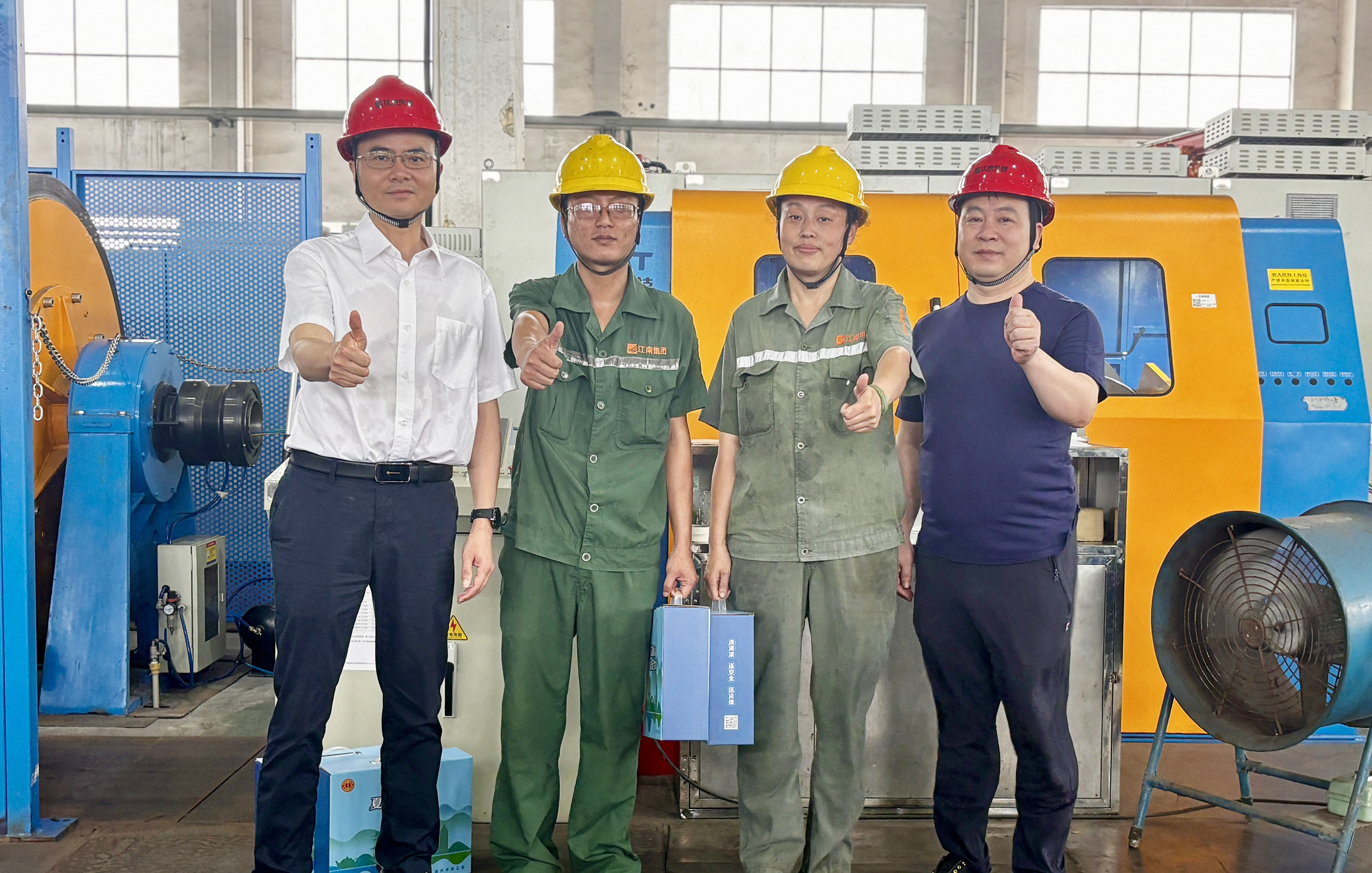 副总经理周骏、总经理助理陆建平赴防火铝线电缆分厂九车间送清凉