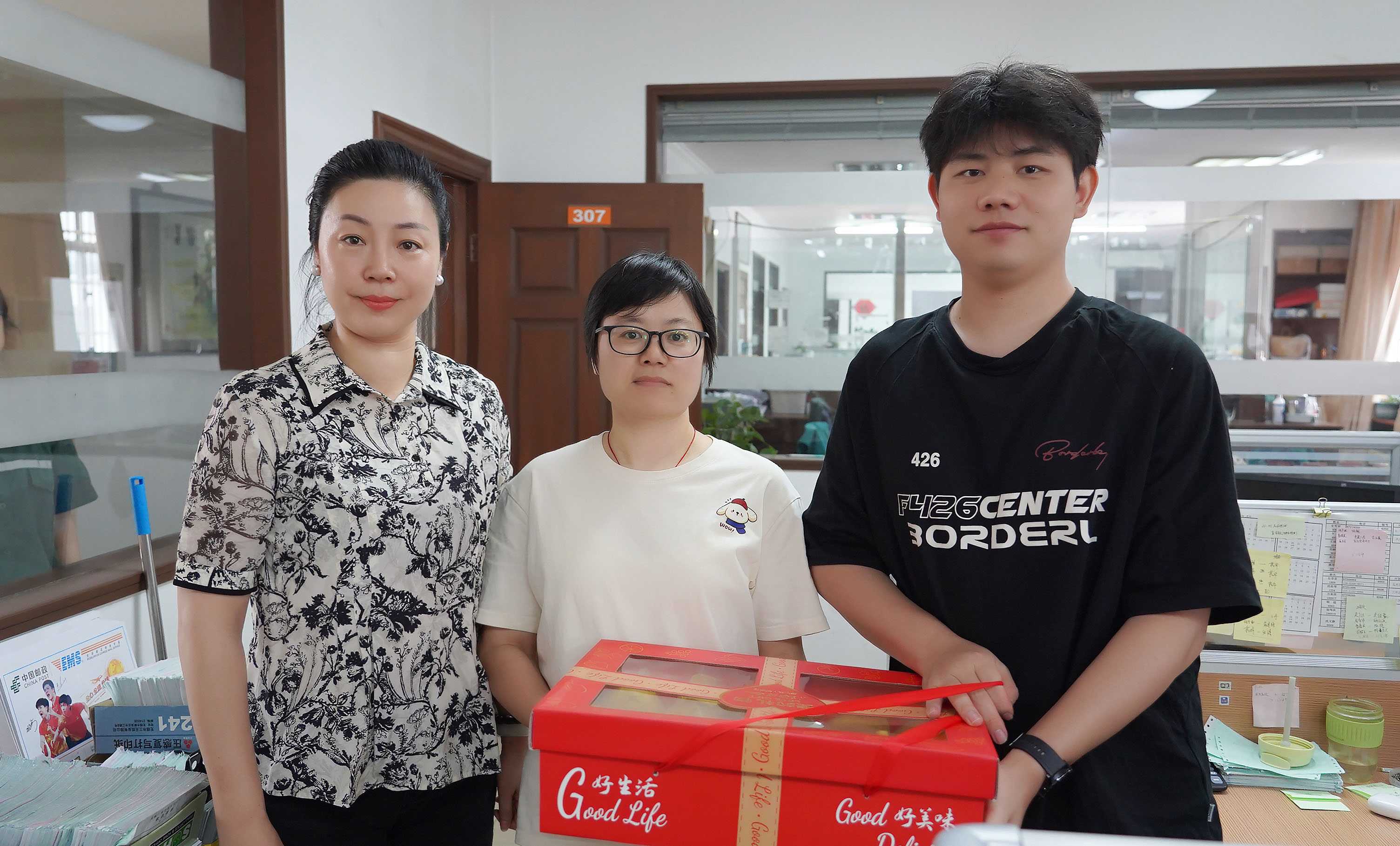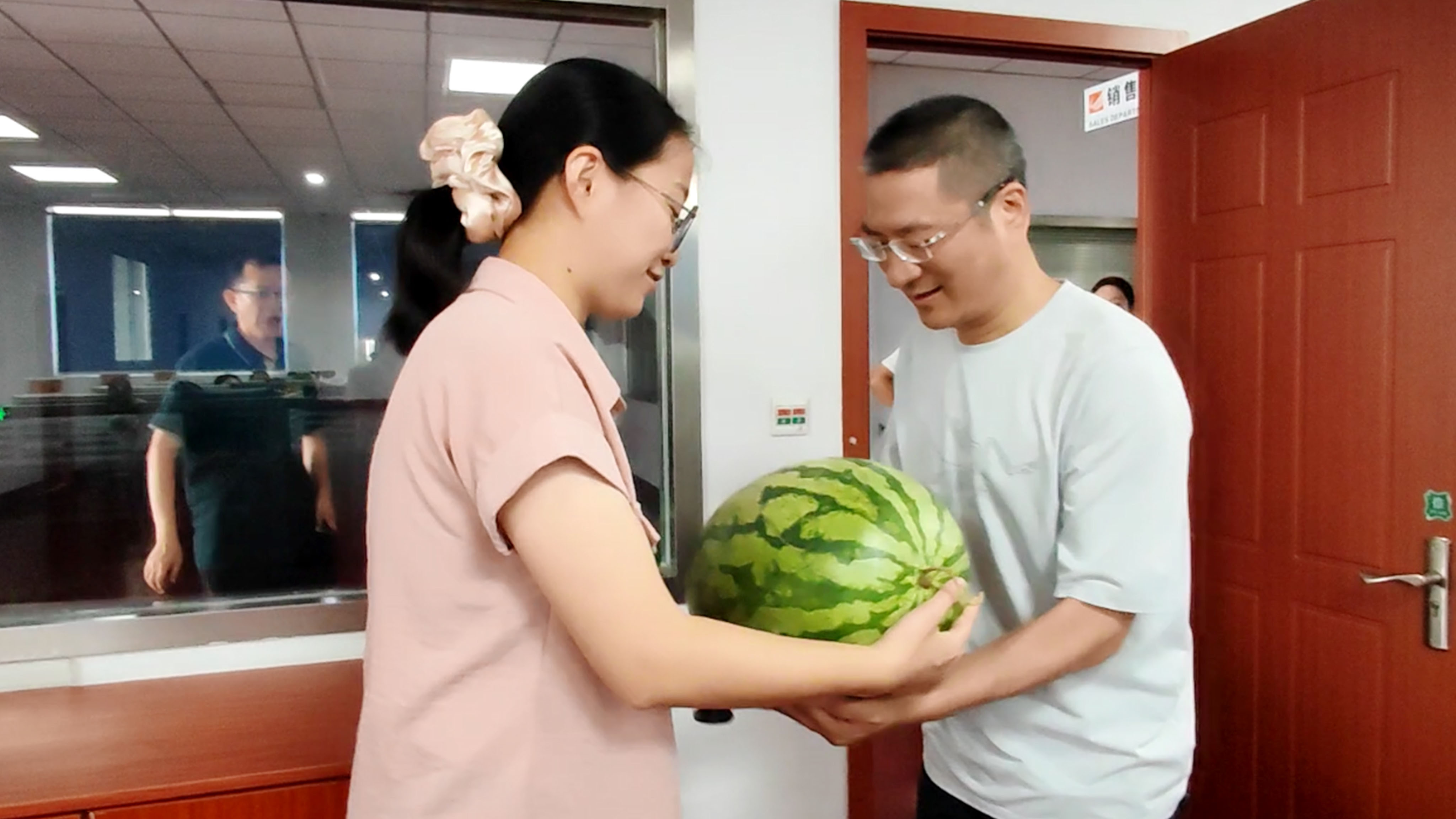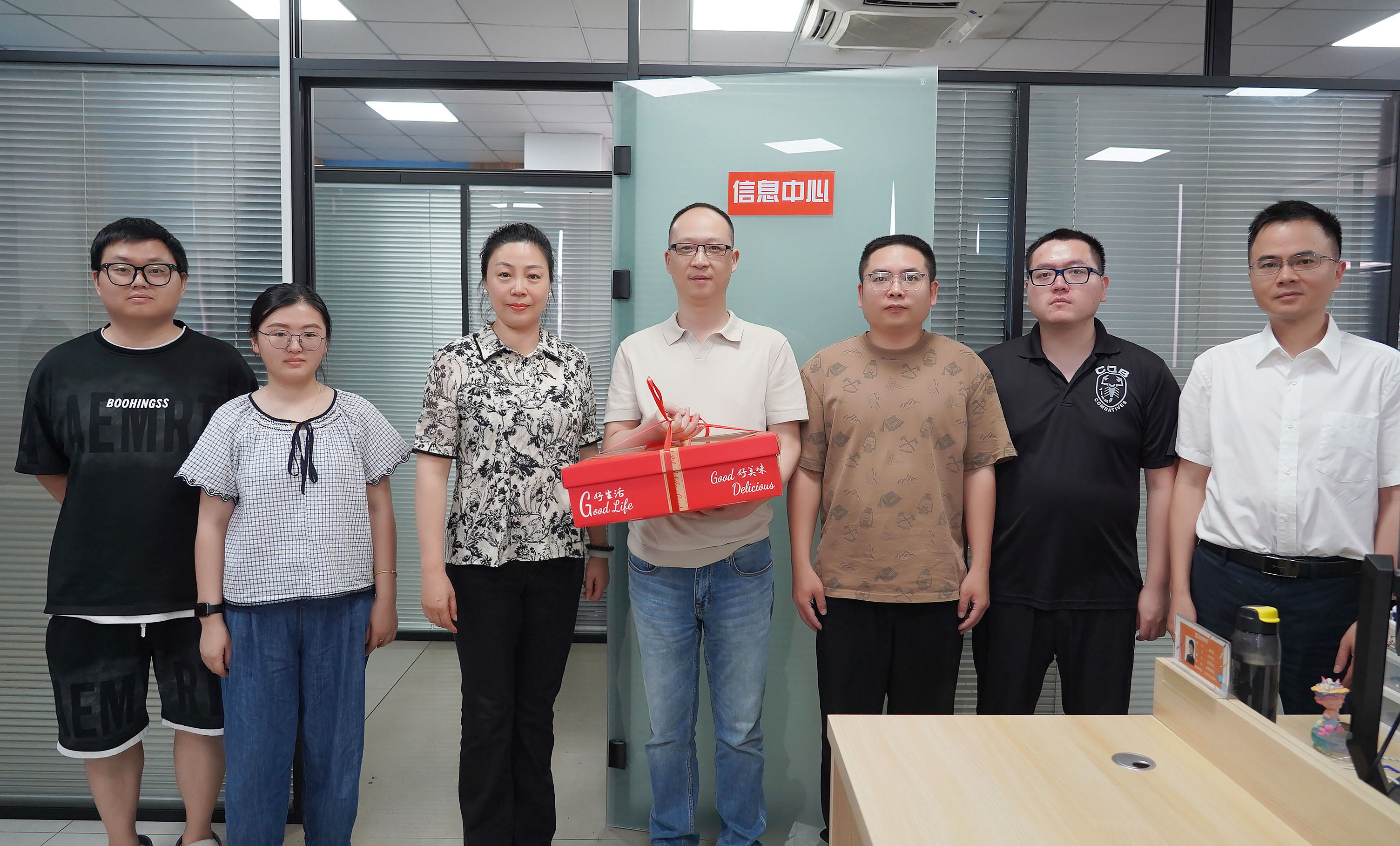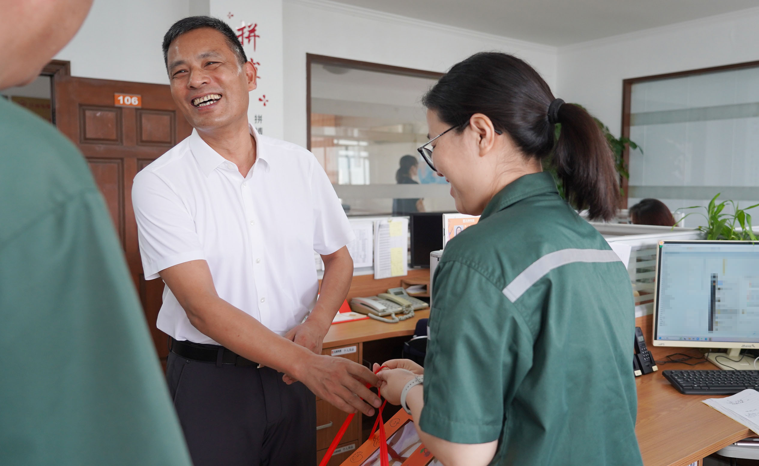 运营总经理蒋君西、副总经理芮一云、总经理助理胡亚红赴办公楼送清凉