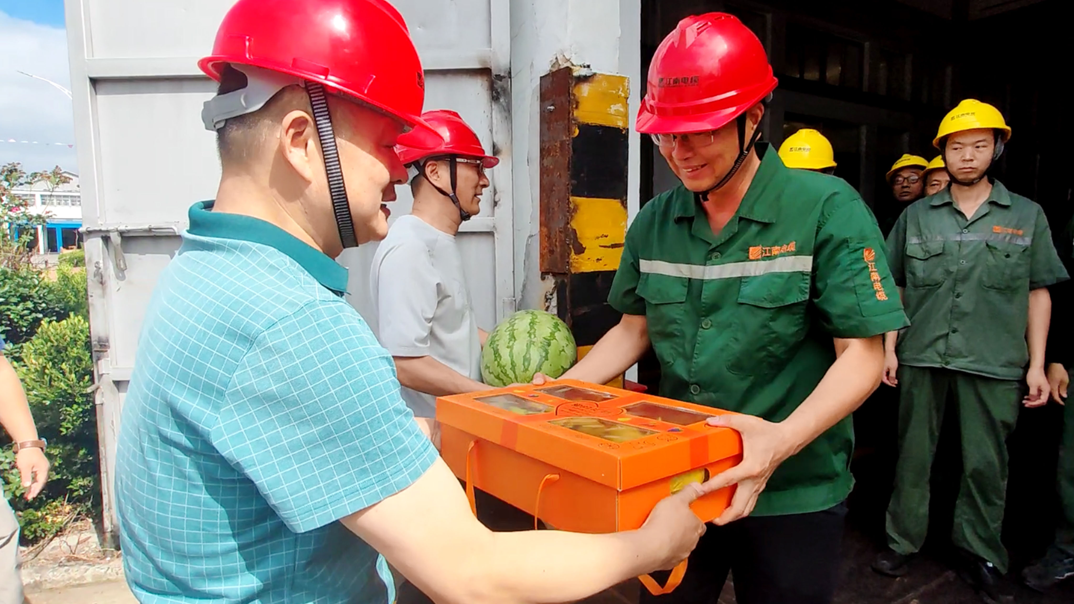 副总经理曹顺康、综合事业部总经理丁作为赴特缆分厂送清凉