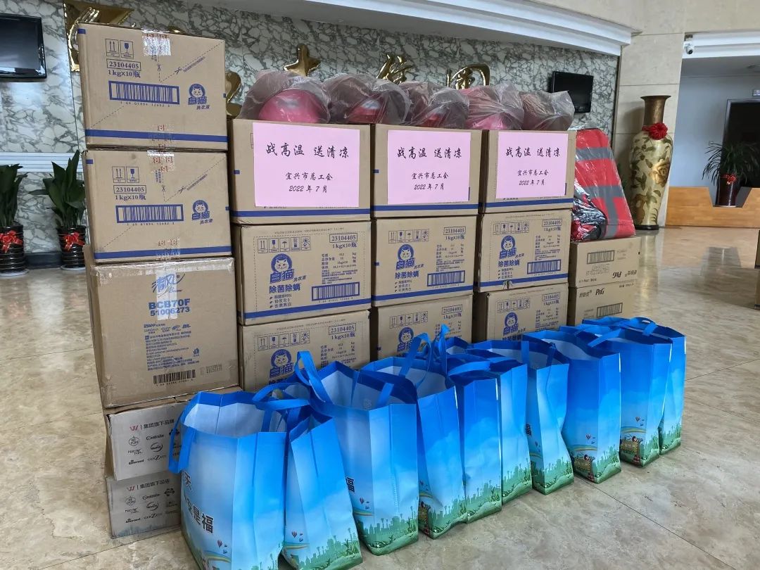 战高温、送清凉,工会和您在一起,把防暑降温物资送到员工的手中,把清凉和关爱送到员工心坎上。